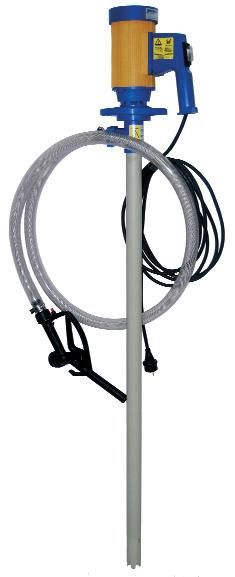 Vatpomp set voor lichte basen en zuren Voordelen en kenmerken Universele motor, beschermingsklasse: IP24 Dubbel geisoleerd Pompslang (aanzuigbuis): polypropeen, 1000mm, diameter 41mm Twee slangklemmen van RVS Gelakt staal Technische eigenschappen maximale capaciteit 4.2 m3/h twee types, maximale opvoerhoogte: 17 m of 5 m maximale mediumtemperatuur: 50° C maximale viscositeit: 300 mPa |