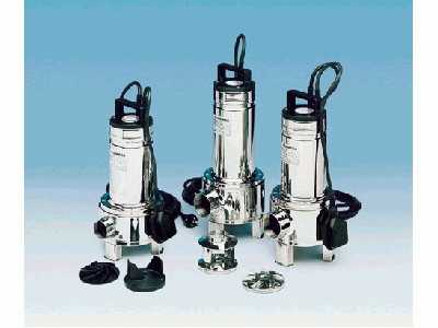 Roestvaststalen dompelpompen voor vervuild water De elektropompen van de DOMO serie zijn beschikbaar met een tweekanaals waaier of met een vortexwaaier (DOMO VX). Pompen met zwevende vaste delen mogelijk tot 50 mm (35 mm bij DOMO 7 en DOMO 7VX). Vier basismodellen met nominale vermogens van 0,55 kW (0,75 HP) tot 1,5 kW (2 HP). Specificaties