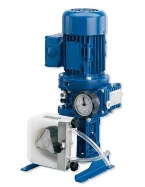 Slangenpomp met doseertoessingen Toepassingen Water en afvalwatwater behandeling. Chemicaliën dosering: Fenic Chloride, natriumhypochloriet, natriumbisulfiet, enz. .. Dosering schuurmiddelen: kaliumpermanganaat, polymeren, ammonia, enz. Capaciteit: max 180 l/uur |