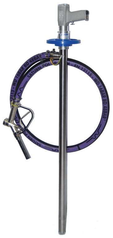 Vatpomp set voor brandbare vloeistoffen Voordelen en kenmerken Persluchtmotor, werkdruk: 6 bar Pompslang (aanzuigbuis): Roestvrijstaal, 1000mm, diameter 41mm Twee slangaansluitingen van RVS met klemmen van aluminium Technische eigenschappen maximale capaciteit: 6 m3/h twee types, maximale opvoerhoogte: 15 m of 8 m maximale viscositeit: 400 mPa |
